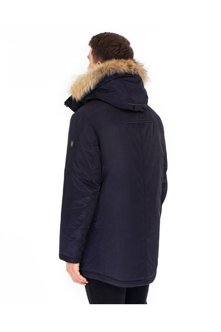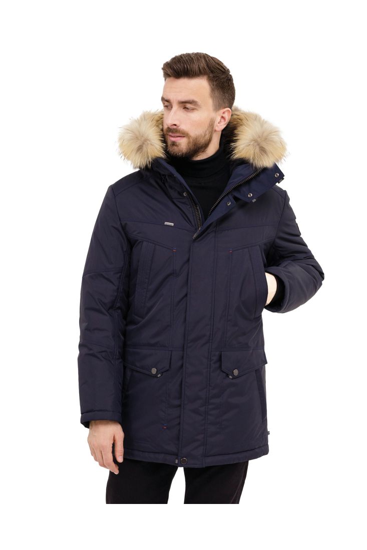 Длинная куртка из двухслойной мембранной ткани с благородным блеском и текстурной поверхностью «Ripstop». Изделие можно отнести к категории курток парок, для которых характерны: большая длина, наличие боковых и нагрудных карманов, а также обилие фурнитуры. Силуэт модели прямой, длина изделия «на пиджак». У куртки удобный воротник стойка переходящий в несъёмный тёплый капюшон с опушкой. Модель представлена в сдержанной цветовой гамме.