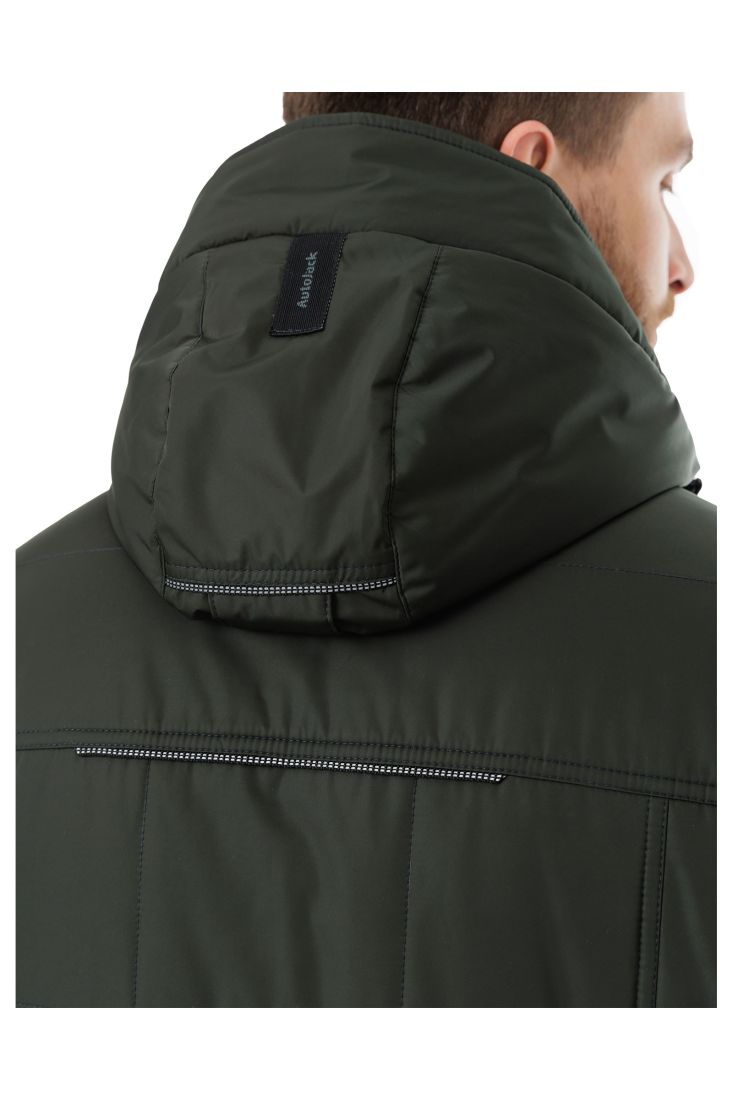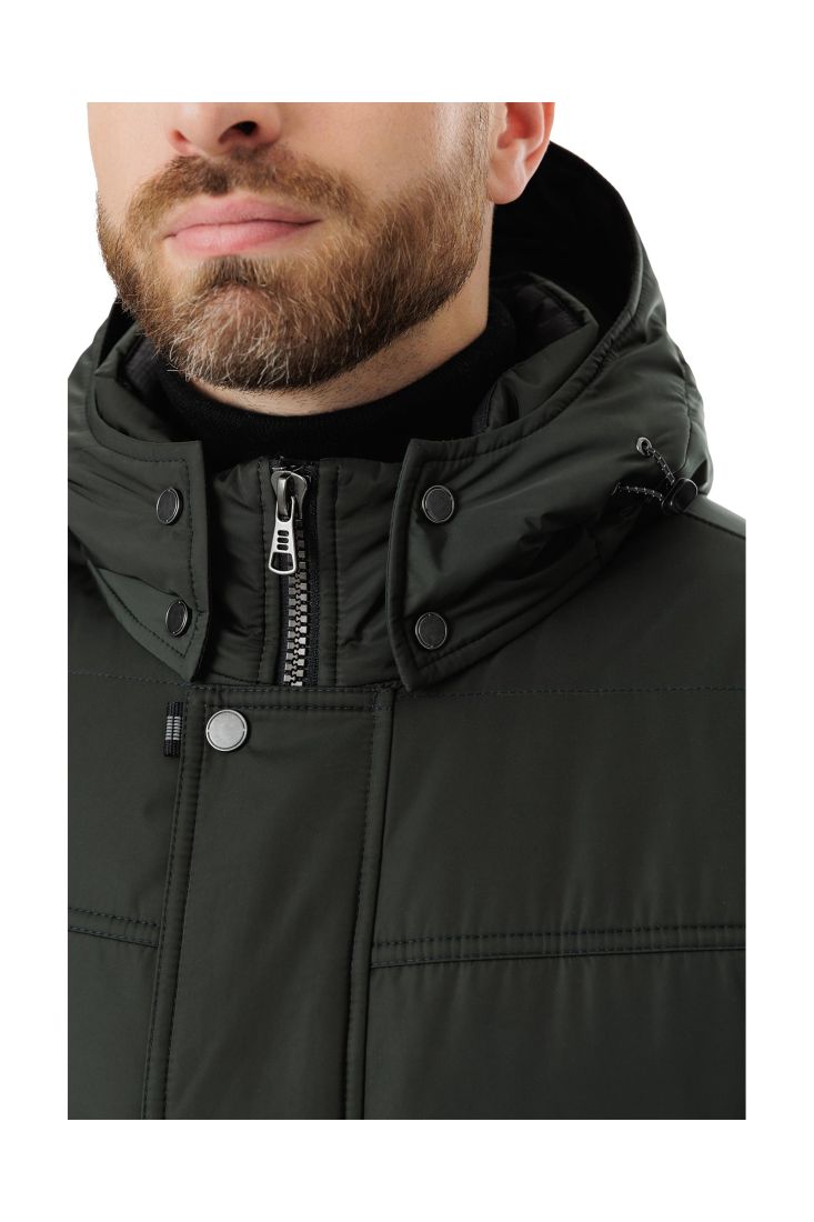Классическая куртка средней длины, модель имеет прямой силуэт и сложную деталировку. В спокойный силуэт помещены сложные элементы, такие как: функциональные карманы, резы, а также обилие декоративных строчек и разной стежки крупного раппорта. Изделие выполнено из базовой двухслойной мембранной ткани средней плотности. Цветовая гамма изделия предельно сдержанная и практичная.